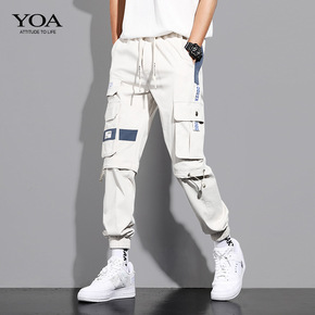 YOA秋季潮牌工装裤男宽松哈伦休闲裤ins拼接嘻哈...