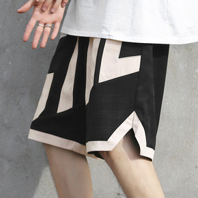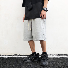 夏季高街排扣篮球卫裤潮牌ins纽扣五分裤侧开叉ro...