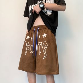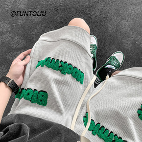 美式高街复古哥特字母刺绣短裤男潮牌嘻哈街头宽松运动...