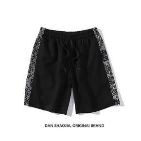 夏季潮牌复古腰果花拼接休闲运动短裤男宽松ins嘻哈...