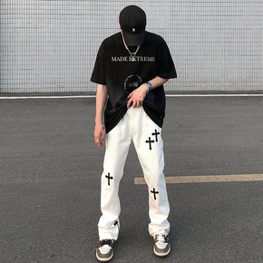 VEGORRS秋冬潮牌仙人掌刺绣休闲裤嘻哈宽松in...