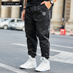 JEANU锦佑潮胖子春季休闲暗纹迷彩长裤加肥加大慢...
