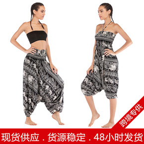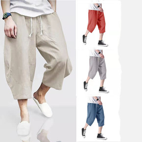 2021亚马逊夏季新款男式宽松棉麻七分裤休闲瑜伽短...