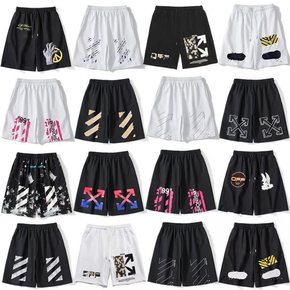 潮牌OW短裤 胶条 鬼手 小黄标 烟花 兔子印花休...