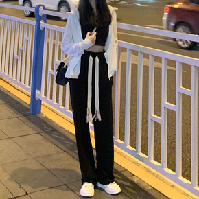 1285春秋宽松休闲卫裤男女多色阔腿裤子爵士ins...