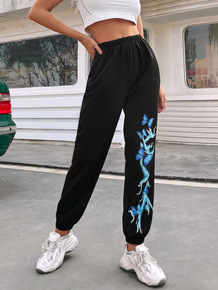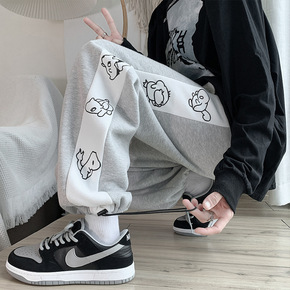 日系新款潮流鲨鱼潮牌长裤骷髅头联名款拼色纯棉宽松运...