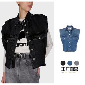 欧洲站ISA法式马甲2022新款休闲百搭翻领牛仔短...