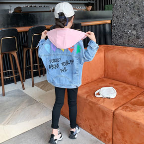 女童牛仔外套秋装2021新款洋气女大童上衣小女孩春...