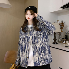 水洗渐变牛仔夹克外套女新款美式街头复古休闲嘻哈情侣...