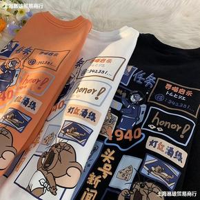 2021冬季加绒加厚学生嘻哈连帽卫衣宽松炸街搞怪熊...