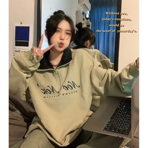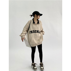 高街vibe美式polo卫衣正肩翻领咖色半拉链外套...