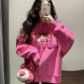 2022新款秋冬设计感俏皮草莓熊超火卫衣女hiph...