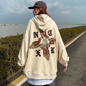 美式复古oversize卫衣女炸街高街设计感小众重...