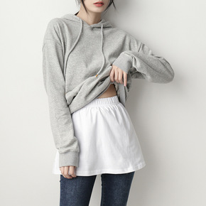 卫衣打底女下摆白边内搭叠穿白色半身裙遮屁股小屁帘子...