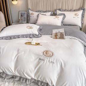 2022新小香风全棉纯棉刺绣花四件套单人床单三件套...