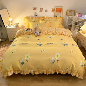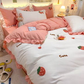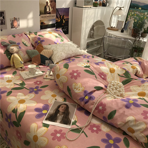 水洗棉床单四件套夏天北欧风ins少女心被套宿舍床上...