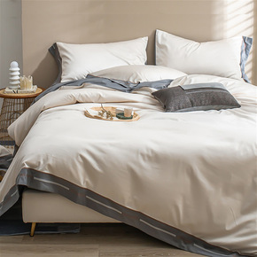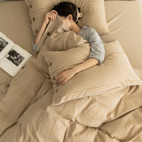 水洗色织纯棉提花四件套简约纯色轻奢100全棉床单床...