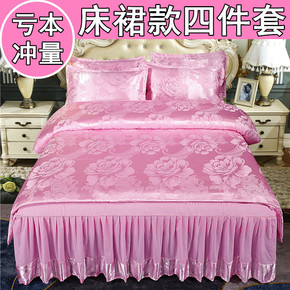 韩版欧式全棉贡缎提花床裙四件套纯棉被套粉色婚庆结婚...