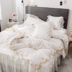 少女心公主风白色床上四件套网红款床单全棉纯棉蕾丝花...