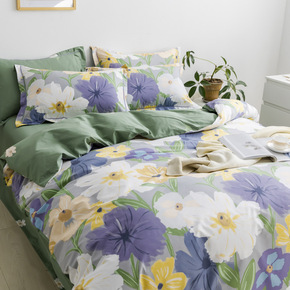 淑女田园紫色小碎花时尚清新全棉四件套纯棉双人床单被...
