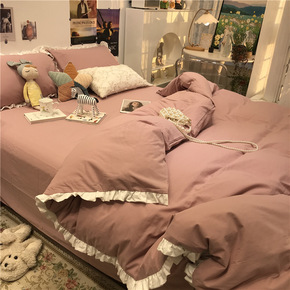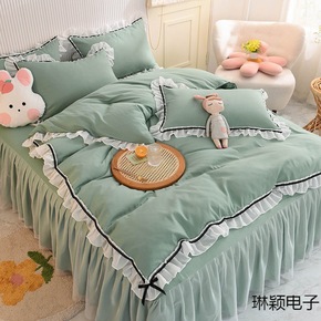 新款韩版花边全棉床单被套四件套加厚纯棉春秋床裙款磨...