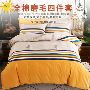水洗棉四件套纯色磨毛床单学生宿舍三件套被套单人床上...