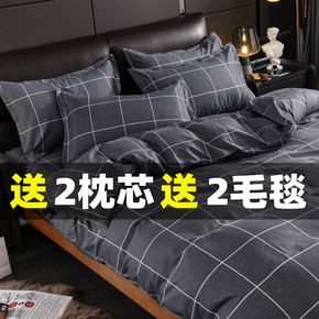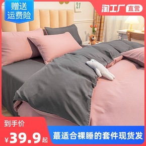 水洗棉四件套床上用品夏季被套被单学生单人女宿舍被罩...