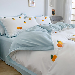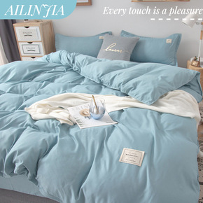 简约水洗棉床上用品四件套ins风被套床单宿舍单人三...