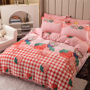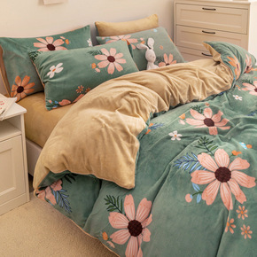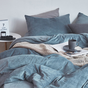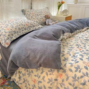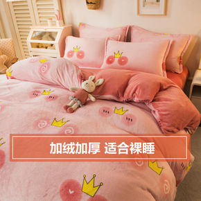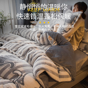 冬季加绒珊瑚绒床上四件套加厚被套法兰绒双面水晶绒公...