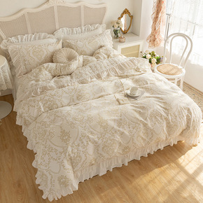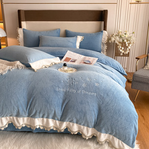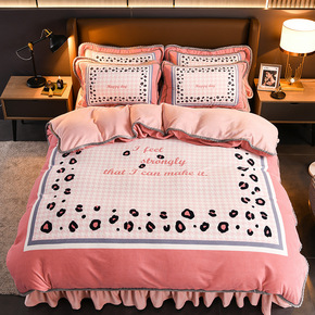 冬季加厚牛奶绒珊瑚绒四件套床裙泡泡纱公主风法莱兰绒...