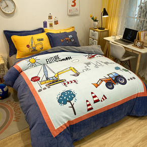 加厚卡通牛奶绒床上四件套珊瑚绒双面绒被套儿童男孩床...