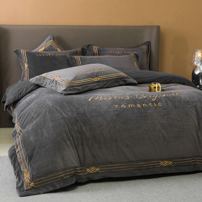 秋冬季法式轻奢水晶绒四件套加厚保暖双面珊瑚绒被套1...