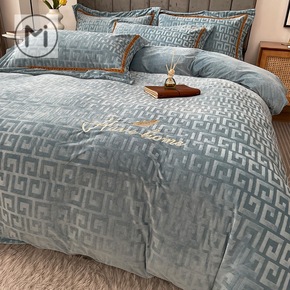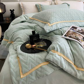 加厚简约轻奢风牛奶绒四件套加绒保暖床单被套雕花秋冬...