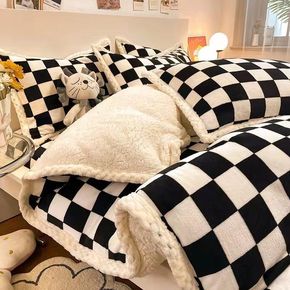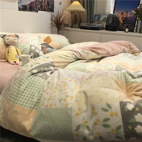 加厚牛奶绒床上四件套羊羔绒棋盘格被套冬季珊瑚绒床品...