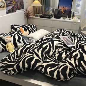冬季双面牛奶绒黑色豹纹床上四件套珊瑚绒1.51.8...