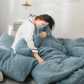 羊羔绒被套四件套加厚保暖冬季单人珊瑚绒毛毯法兰绒双...