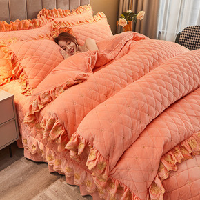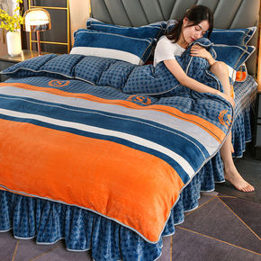 冬季加厚夹棉床裙四件套双面珊瑚法莱水晶绒被套床盖三...
