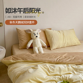 撸猫感天鹅绒四件套珊瑚绒保暖简约纯色床上用品床单被...