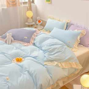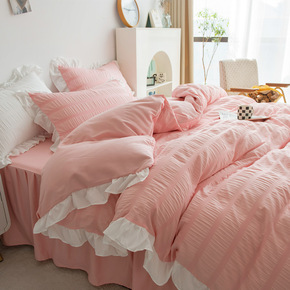 2022新款水洗棉泡泡纱花边四件套被套床单公主风床...