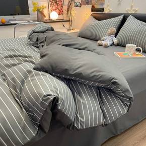北欧简约条纹被套针织水洗棉四件套超柔双人床单宿舍床...