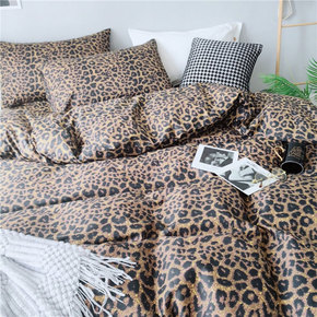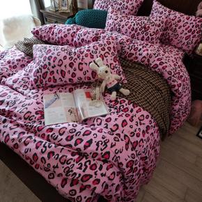 网红粉色60支豹纹床上四件套夏季裸睡全棉被套床单三...