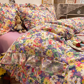 新款韩版全棉床裙四件套公主风田园春夏床上用品被套床...