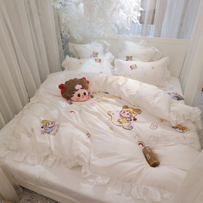 少女四件套全棉公主风可爱床单被套100棉三件套床上...