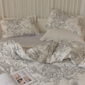 Moryio文艺复古素描水墨画床上四件套全棉被套床...