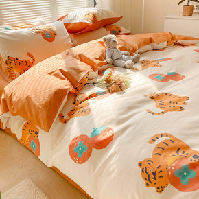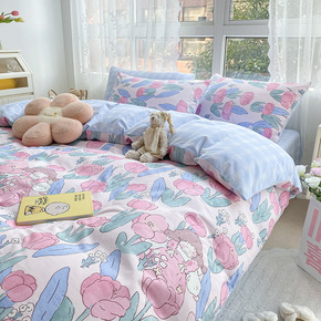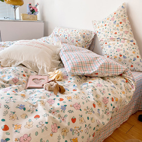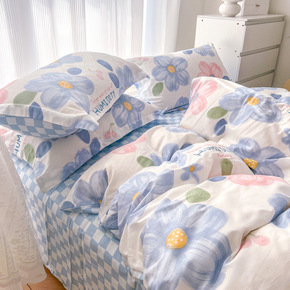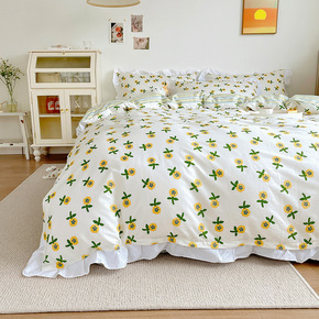 ins风太阳花少女床上四件套纯棉全棉被套床单被罩床...