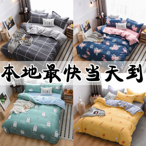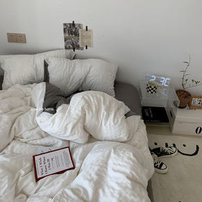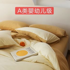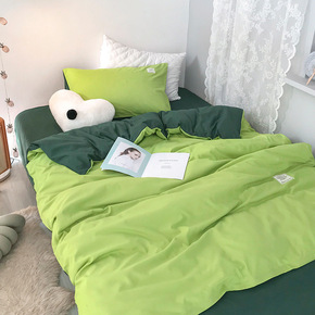 简约四季款水洗棉纯色四件套酒店床单被套宿舍三件套床...