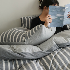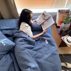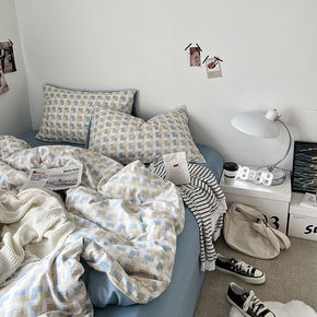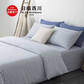 日织西川日式无印全棉色织水洗棉四件套纯棉格子被套纯...
