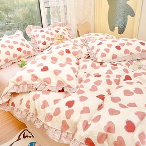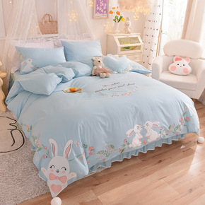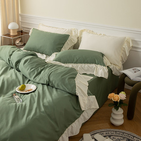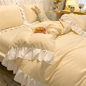 2022春夏新款ins风全棉纯棉四件套花边被套三件...