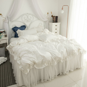 60支水洗真丝冰天丝蕾丝荷叶花边四件套公主风纯全i...