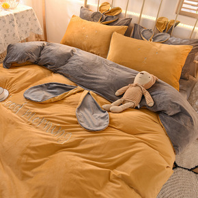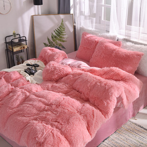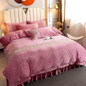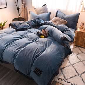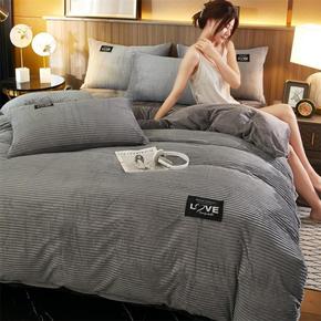 冬季加厚牛奶绒床上四件套双面绒水晶被套珊瑚绒床单公...